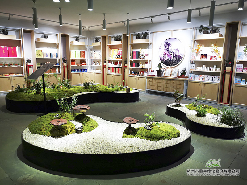 深化設(shè)計(jì)充分利用原始現(xiàn)場3米高差形成錯層主體建筑,從入口進(jìn)入庭院觀建筑是一層,背面觀是兩層,負(fù)一層形成半地下室空間,形成了前庭后院的浙江美麗農(nóng)家院落。一層展廳由茶藝展示區(qū)、會客區(qū)、書房等組成,品茶、書法、閑談、小憩,展示愜意富美的浙江生活;負(fù)一層展廳則以產(chǎn)品陳列為主,主要展示浙江省前沿的室內(nèi)園藝品種,宣傳浙江最新的栽培技術(shù)與深加工產(chǎn)品等,讓園藝、生活有機(jī)融合。