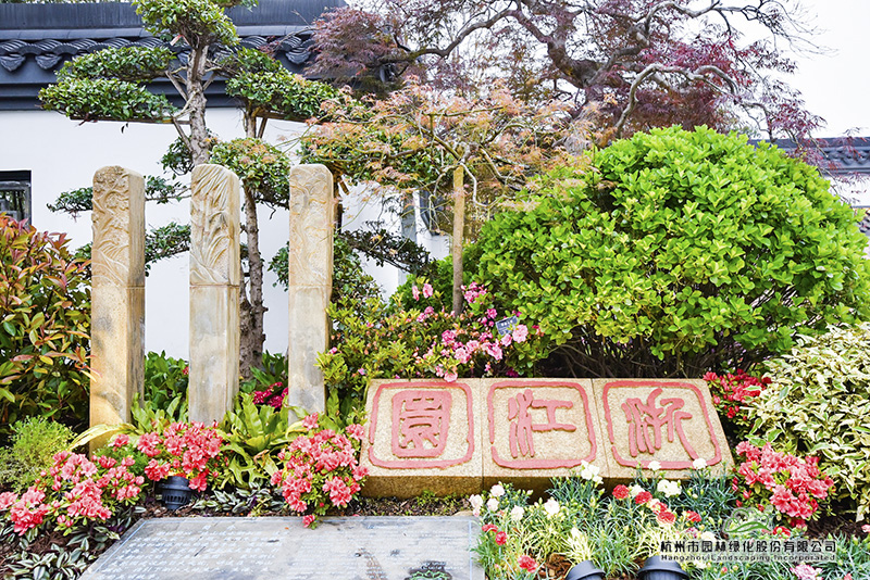 位于浙江園主入口西側(cè)的景觀小品“浙江印”,提煉自石鼓篆書第一人、西泠印社首任社長吳昌碩先生的書法作品,三方極具浙派篆刻風(fēng)格的印章上,“浙江園”三個字,干凈、利落,古樸、大氣。這幅美景的背后,是深化設(shè)計(jì)團(tuán)隊(duì)數(shù)次往返西泠印社,從無數(shù)的篆刻名家作品中挑選、比對,決定采用最能代表浙江篆刻藝術(shù)的吳昌碩先生字體,從中找出“浙”、“江”、“園”三個字,在設(shè)計(jì)圖中反復(fù)比對,調(diào)整位置、大小,最終確定下來。