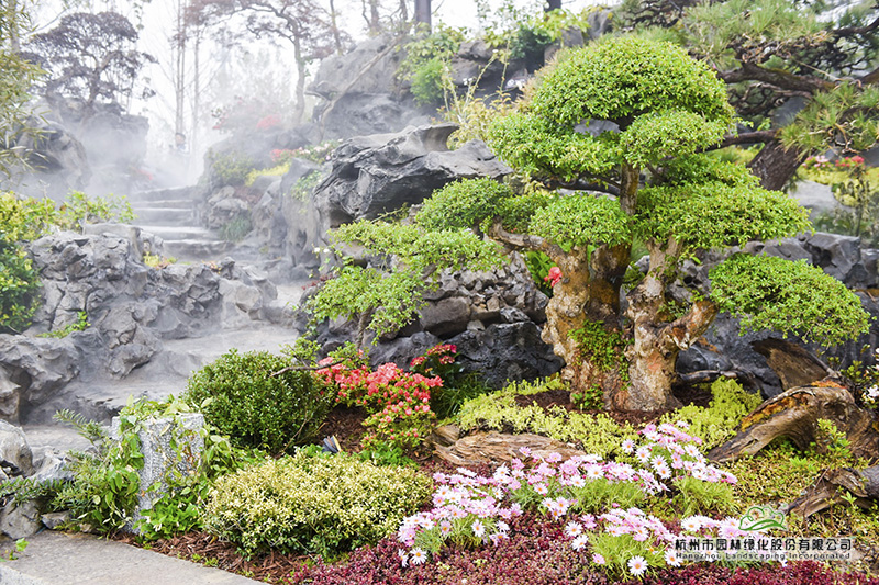 再往里走,富春山居照壁前的造型黑松和紅花檵木,一左一右,遙相呼應(yīng),樹姿優(yōu)美,枝干舒展,仿佛熱情歡迎遠(yuǎn)道而來的客人。這兩棵樹,是深化設(shè)計(jì)團(tuán)隊(duì)跑遍全國重要苗圃挑選回來的,讓最美的一面呈現(xiàn)在游客面前。