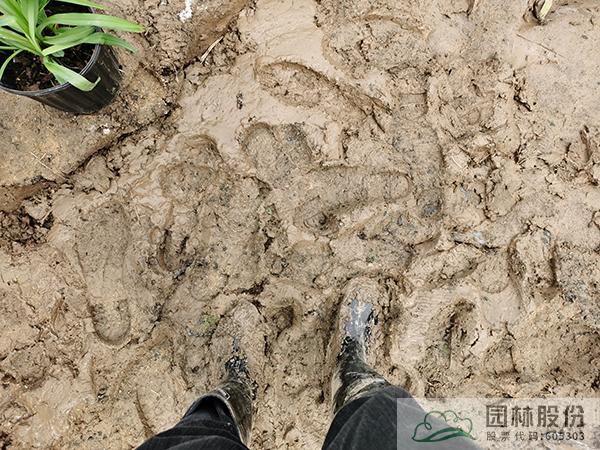 本方案落地地塊由于主要觀賞面與整體地勢(shì)相反,地塊易積水,且施工前期均為雨水天氣,種植土壤為黏質(zhì)土,保水性極好,如同“彈簧土”一般,為前期地形整理工作增添了不少難度。施工團(tuán)隊(duì)通過人工排水、設(shè)置排水緩坡、埋置排水管等多種方式扭轉(zhuǎn)地勢(shì),解決花境景觀觀賞性與花境內(nèi)部排水等問題。